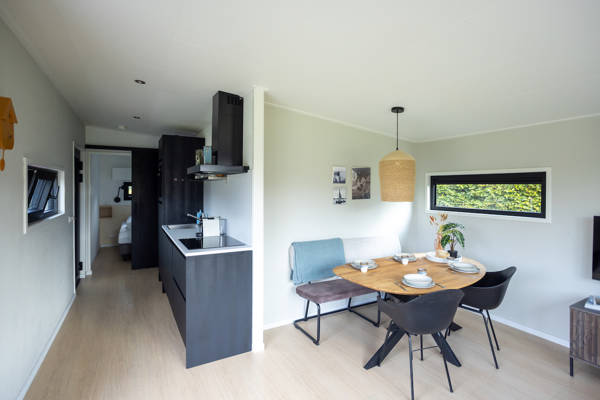 De keuken heeft 4-pits inductie koken, een combimagnetron, een grote koelkast en diepvries en vaatwasser.