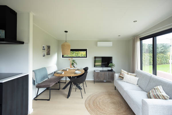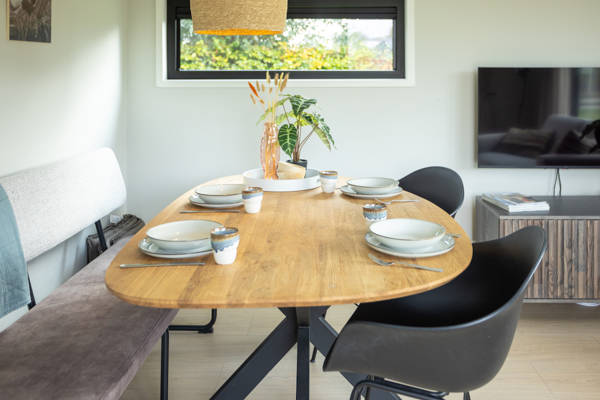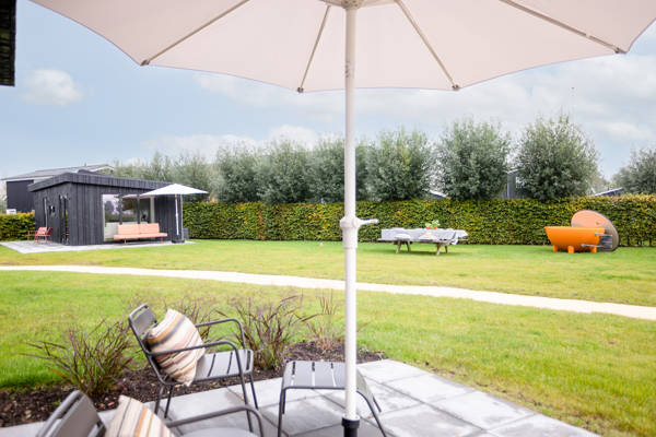 De hele woning is begane grond en het terras is op het zuidwesten. Op het terras staat een heerlijke loungebank van Weltevree met 2 aparte stoelen. Heerlijk fietst of wandelt u ’s ochtends het park uit naar de lokale winkel voor verse broodjes (alleen van april-oktober). Uw eventuele gehuurde sloep ligt in het haventje waar vandaan u meteen op het meer bent.